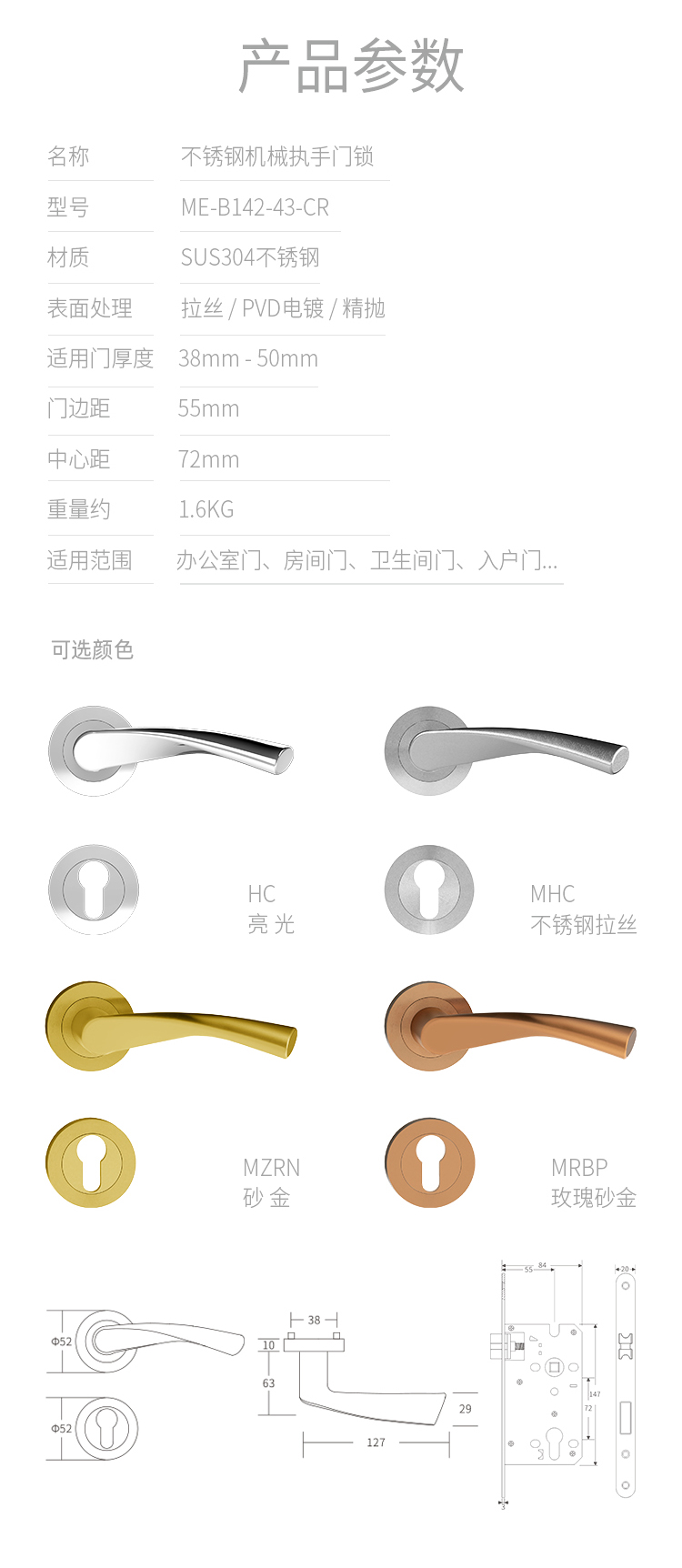 深圳高端大圈安排预约资源:機器門鎖 Mechanical Lever Lockset - Stainless Steel