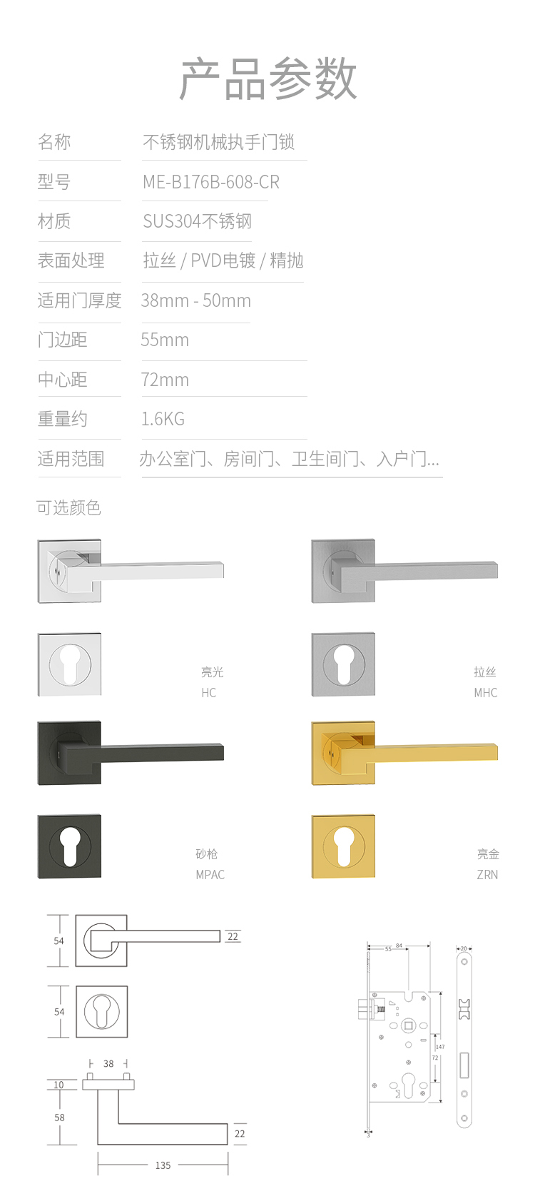 乙酰乙酸色彩明度:光亮HC、拉絲MHC、亮金ZRN、砂槍MPAC